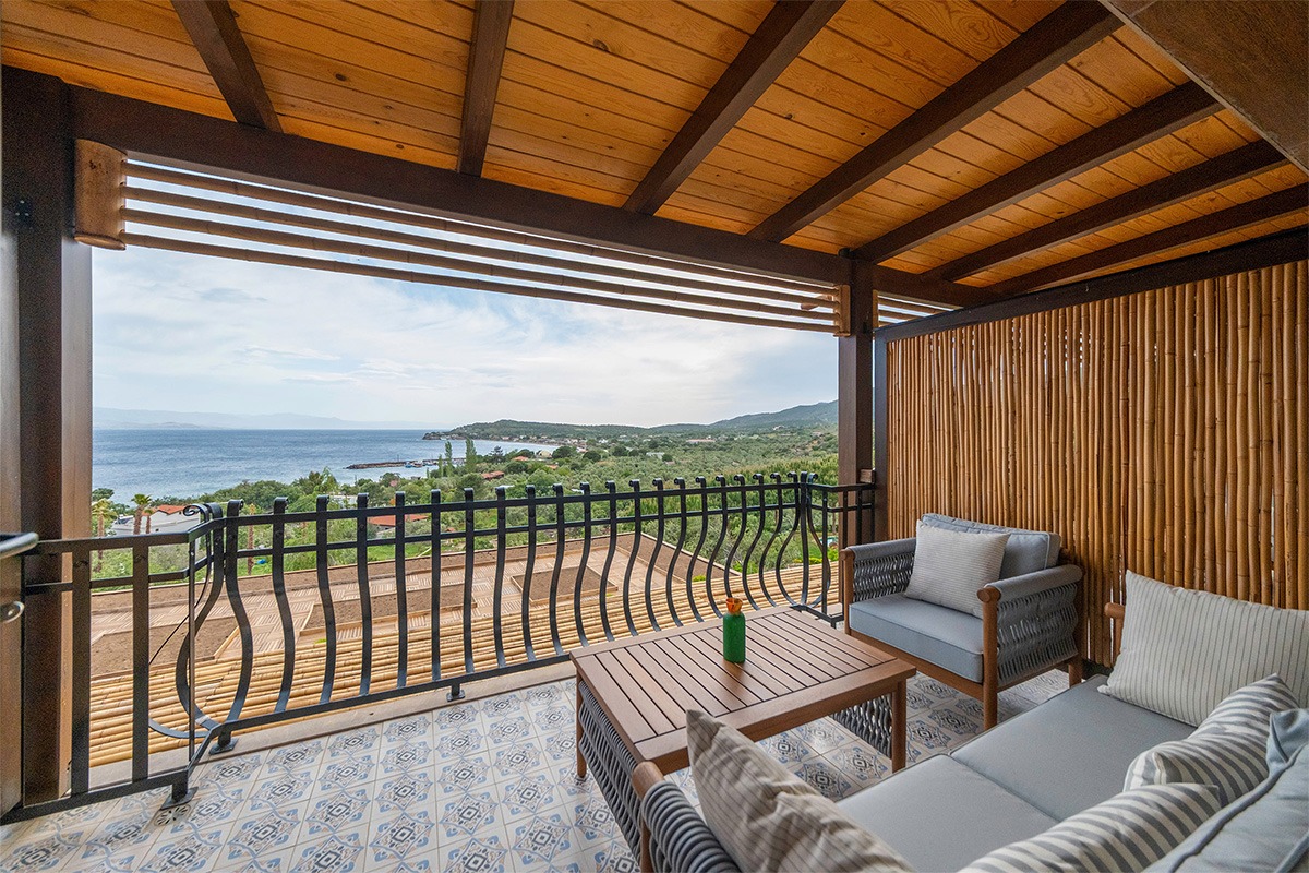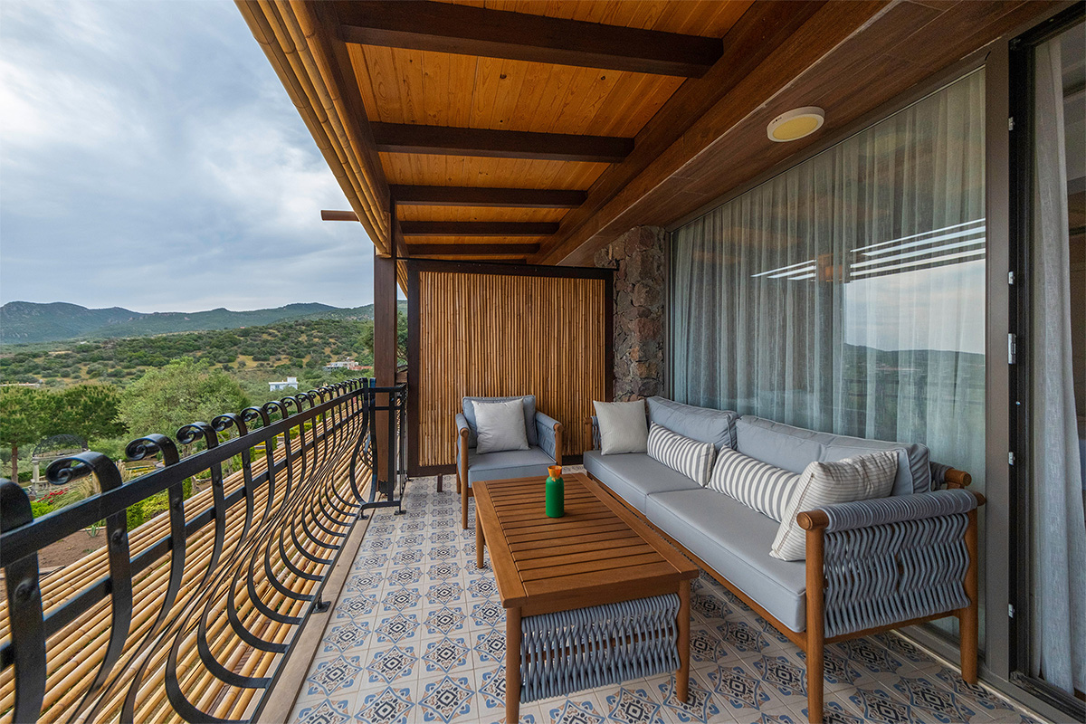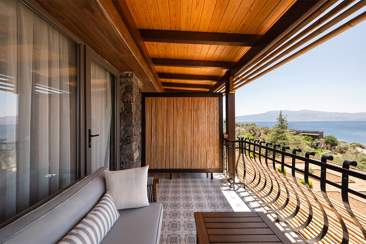 Bathed in natural light, the room invites you to wake up to the Aegean Sea and enjoy the stillness and beauty of the view throughout the day.